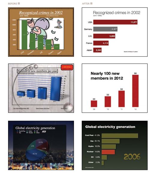 Theo thói quen thông thường, chúng ta hay nhét rất nhiều thông tin, số liệu vào slide. Hậu quả là slide dày đặc chi chít chữ, làm rối mắt khán giả. Sách giải thích rõ sai lầm cơ bản này: