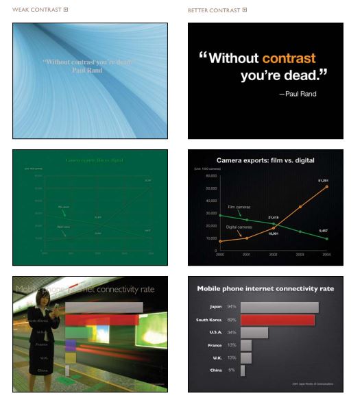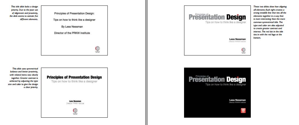 Phần tiếp theo là phần hay nhất của cuốn sách. Tác giả giới thiệu những nguyên lý trong việc thiết kế slide và những sai lầm ta thường hay phạm phải. Mỗi nguyên lý đều đi kèm với những slide mẫu, giúp ta dễ dàng nhìn ra lỗi sai của mình. Mình đã phải thốt lên “ồ, ra trước mình làm sai bét cả” mấy lần khi đọc tới phần này.
