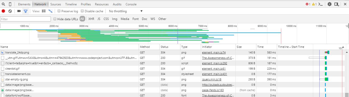 Ở tab này, ta có thể xem toàn bộ những thứ được trình duyệt tải về từ server: HTML, CSS, JS, hình ảnh, … Mình thường dùng tab này để xem thời gian tải trang, nhằm optimize và tăng tốc độ.