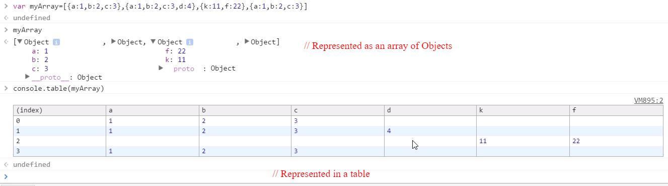 Chắc 90% các bạn web developer đều biết dùng console.log() để in ra một object trong cửa sổ console, giúp việc debug được dễ dàng. Chrome Developer Tool còn có một hàm rất thú vị nhưng ít người biết, đó là hàm console.table(). Hàm này có thể in 1 mảng các object ra dưới dạng 1 bảng, rất trực quan và dễ nhìn.