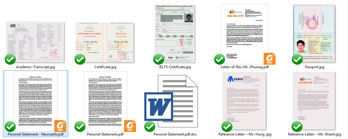 - Bản scan 2 thư giới thiệu (Có chữ ký). Nhớ phải có logo của trường, địa chỉ mail của cty hoặc trường nhé, không được dùng mail cá nhân. Một số trường còn gửi mail xác nhận cho người viết thư. Nếu bạn nhờ sếp hay giáo viên viết thư, nhớ dặn họ check email và xác nhận giùm.