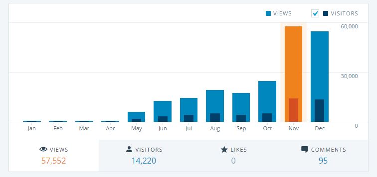 Những hôm đầu, blog một ngày chỉ lèo tèo vài view, cả tháng chỉ được chưa tới 500 view. Cũng nhờ sự góp ý, ủng hộ mà cổ vũ của các bạn mà blog đã dần vượt qua được các cột mốt 1000 view, post thứ 50, 100.000 view, và ngay ngày hôm nay thì lượng view của blog đã lên tới con số 200.000, fanpage hơn 700 lượt like, khoảng 1-1k5 lượt view một ngày.