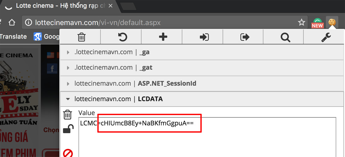 Lotte Cinema giờ đã mã hoá username trong cookie, khỏi nghịch ngợm nhé