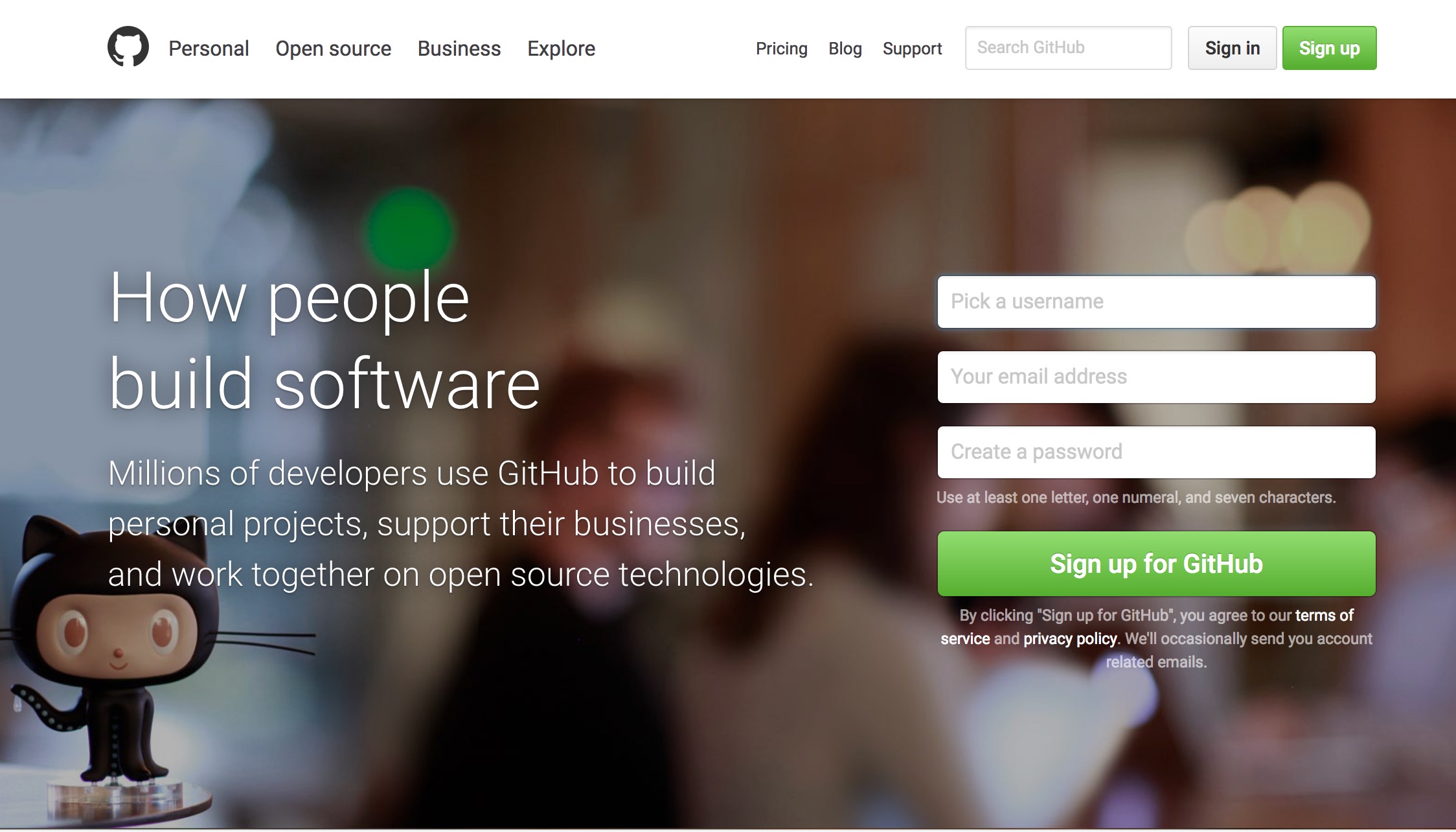 1. Đăng ký: Các bạn vào github.com để đăng ký một tài khoản nếu chưa có tài khoản github nhé.
