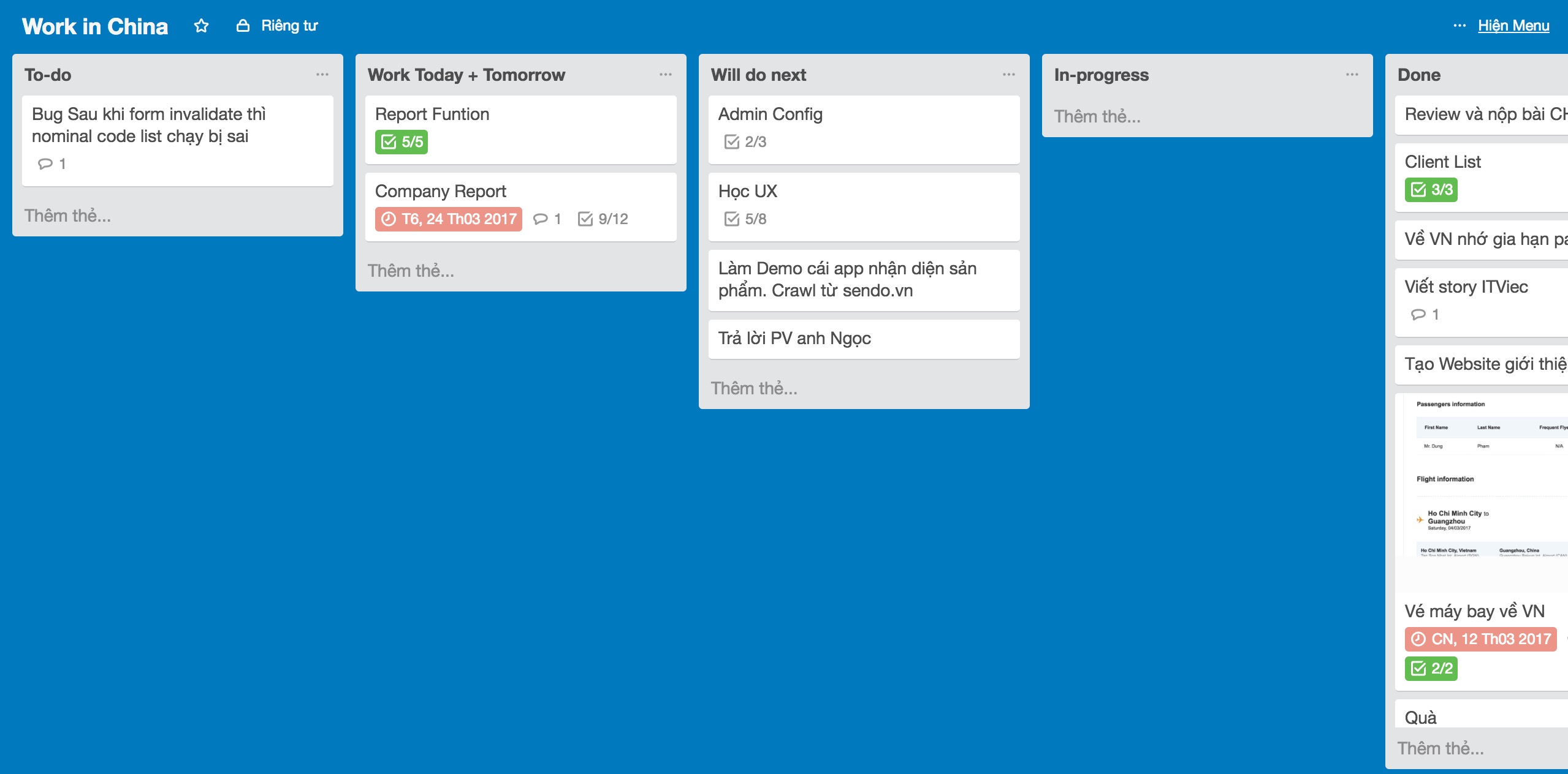 Thế rồi sau đó, mình có tìm hiểu về phương pháp Personal Kanban. Thấy nó có vẻ đơn giản nên mình cũng không thử. Đợt qua Trung Quốc, do dự án và việc học quá nhiều làm mình rối, mình đành nhắm mắt đưa chân làm liều dùng thử!