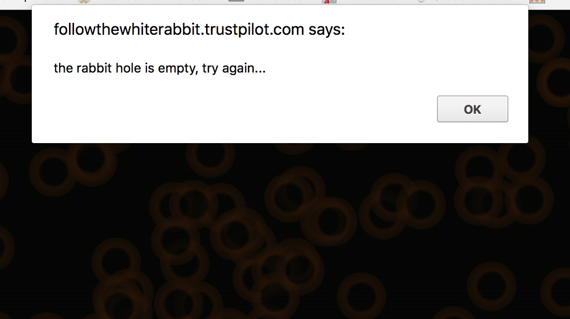 Sau khi click vào link, mình bị redirect đến một trang khác: http://followthewhiterabbit.trustpilot.com/fe/bottom-of-rabbit-hole.html. Trang nào có gì nào?