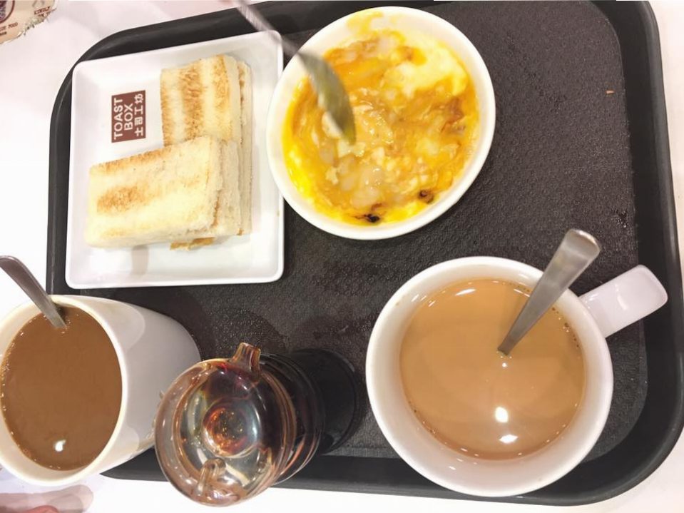 Kaya Toast là món bánh mì kẹp bơ và bơ đậu phộng, chấm với trứng. Đây là món ăn sáng phổ biến, đi kèm trà sữa hoặc cafe (dân đây gọi là teh và kopi)