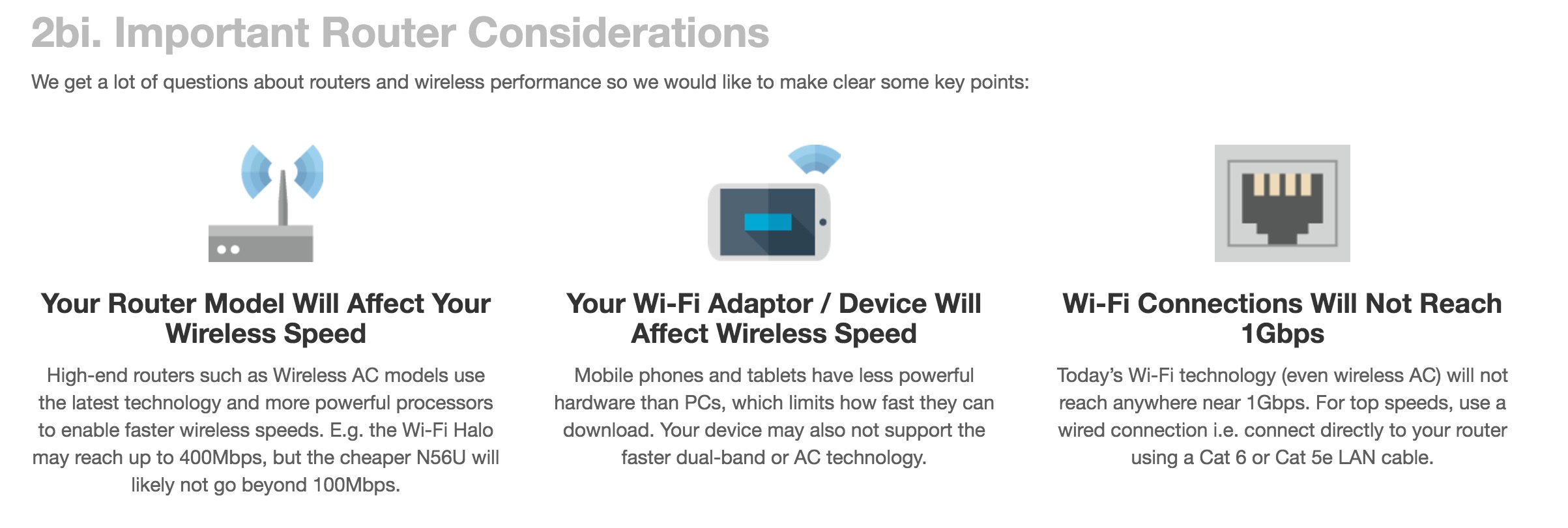 Đa phần các nhà mạng ở đây đều cung cấp gói cáp quang băng thông rộng, tốc độ toàn 500Mbps – 1Gbps tức 60-125MB/s. Do vậy nên họ khuyến cáo bạn dùng dây vì tốc độ tối đa của Wifi chưa đạt được mức đấy. Thấy hiện đại quá cũng khổ chưa!