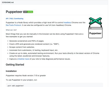 Puppeteer là một thư viện của NodeJS, có khả năng điều khiển Chrome headless browser thông qua code. Các bạn có thể tìm hiểu thêm tại: https://github.com/GoogleChrome/puppeteer