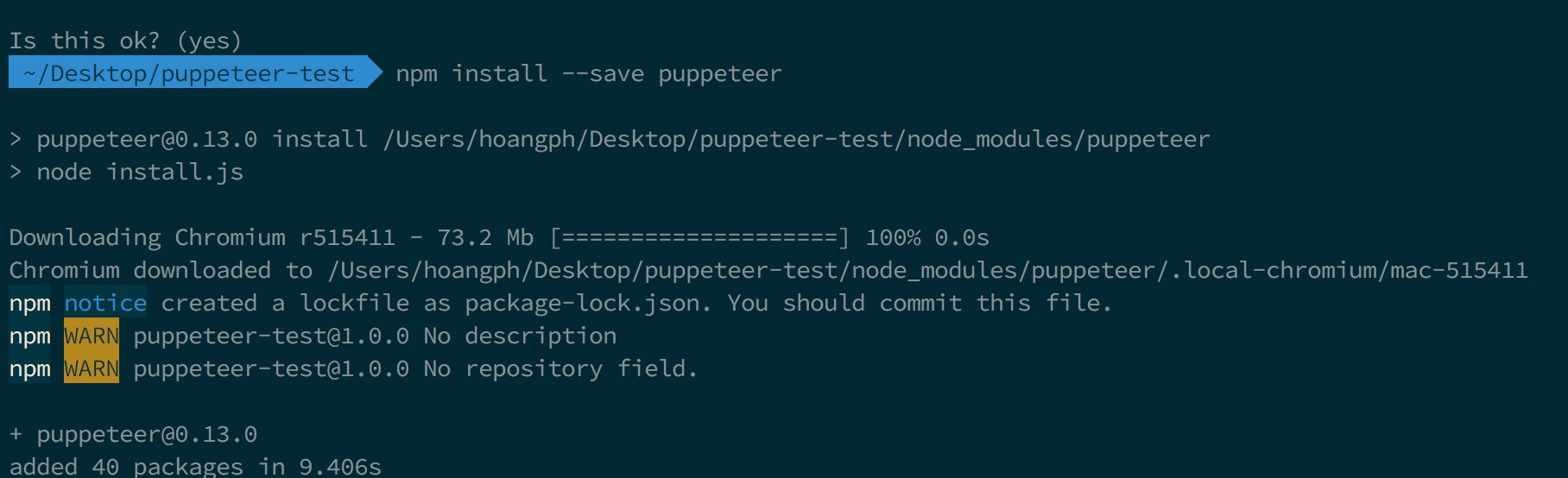 npm install --save puppeteer