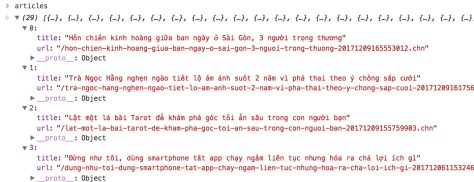 Kết quả chúng ta đạt được, 1 mảng chứa các object thông tin bài viết
