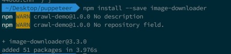 2. Các bạn mở cửa số cmd của project hiện tại, gõ npm install –save image-downloader để thêm thư viện tải ảnh.