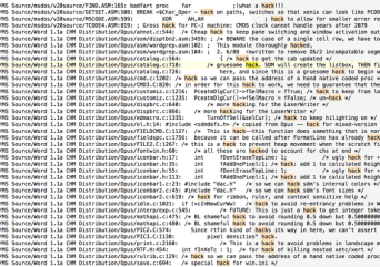 Còn đây là mã nguồn đầy “hack” của Hệ Điều Hành MS-DOS. “Hack” là từ lóng để chỉ việc chúng ta “code đểu”, dùng cách không chính thống để giải quyết vấn đề.