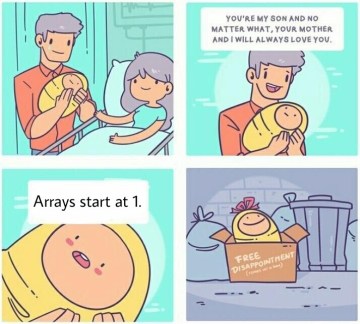 Giả sử ta có một danh sách (mảng) các phần tử. Khi muốn truy cập phần tử đầu tiên, ta sẽ không dùng a[1] mà sẽ dùng a[0].