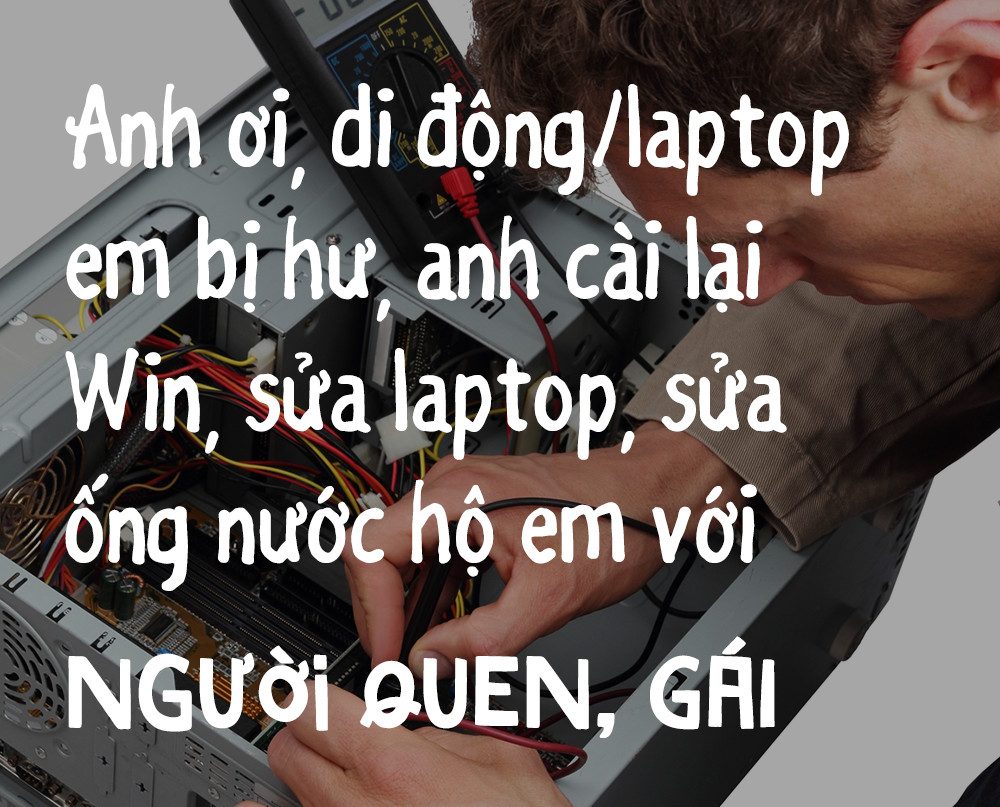 m làm công nghệ thông tin thì m phải làm được mấy cái đấy chứ(cài win, sửa điện thoại, sửa tivi, đầu kĩ thuật số…, kiêm luôn ống nước nữa nhé :v)