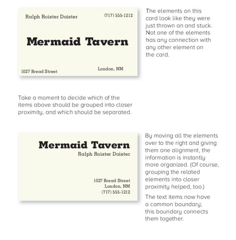 1. Proximity – Khoảng cách: Sử dụng khoảng cách để diễn đạt mối quan hệ giữa các phần tử. Trong một design, những phần tử liên quan đến nhau nên được đặt gần nhau.