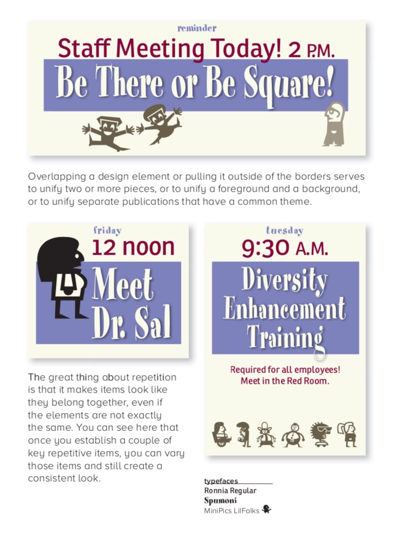 3. Repetition – Lặp lại: Những phần tử có chức năng tương tự nhau thì nên có cùng thiết kế (font, màu sắc). Điều này tạo ra sự nhất quán trong design.