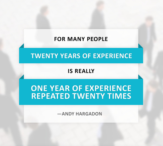 Lúc này, 4 năm 10 năm kinh nghiệm cũng chỉ là 1 năm kinh nghiệm lặp đi lặp lại 4 lần, 10 lần mà thôi! Làm lâu, số năm kinh nghiệm thì nhiều nhưng kinh nghiệm thật sự thì ít!