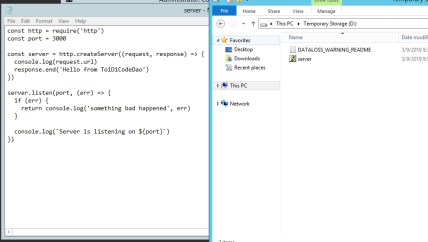 2. Dán đoạn code sau vào, lưu lại thành server.js trong ổ D cho dễ tìm
