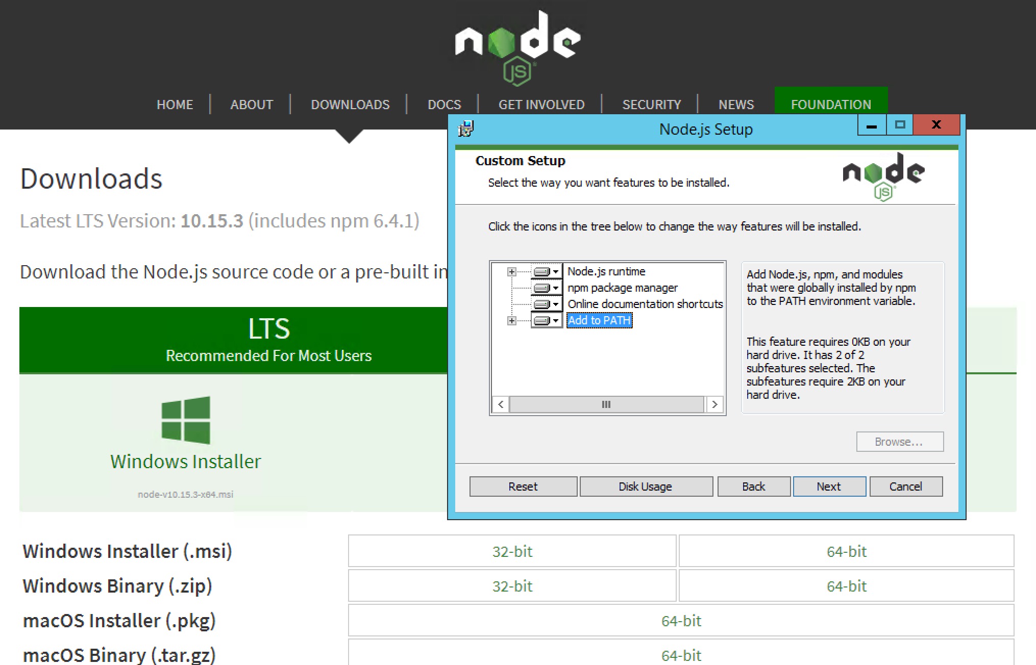 2. Vào trang chủ của NodeJS, tải bản mới nhất về để cài: https://nodejs.org/en/download