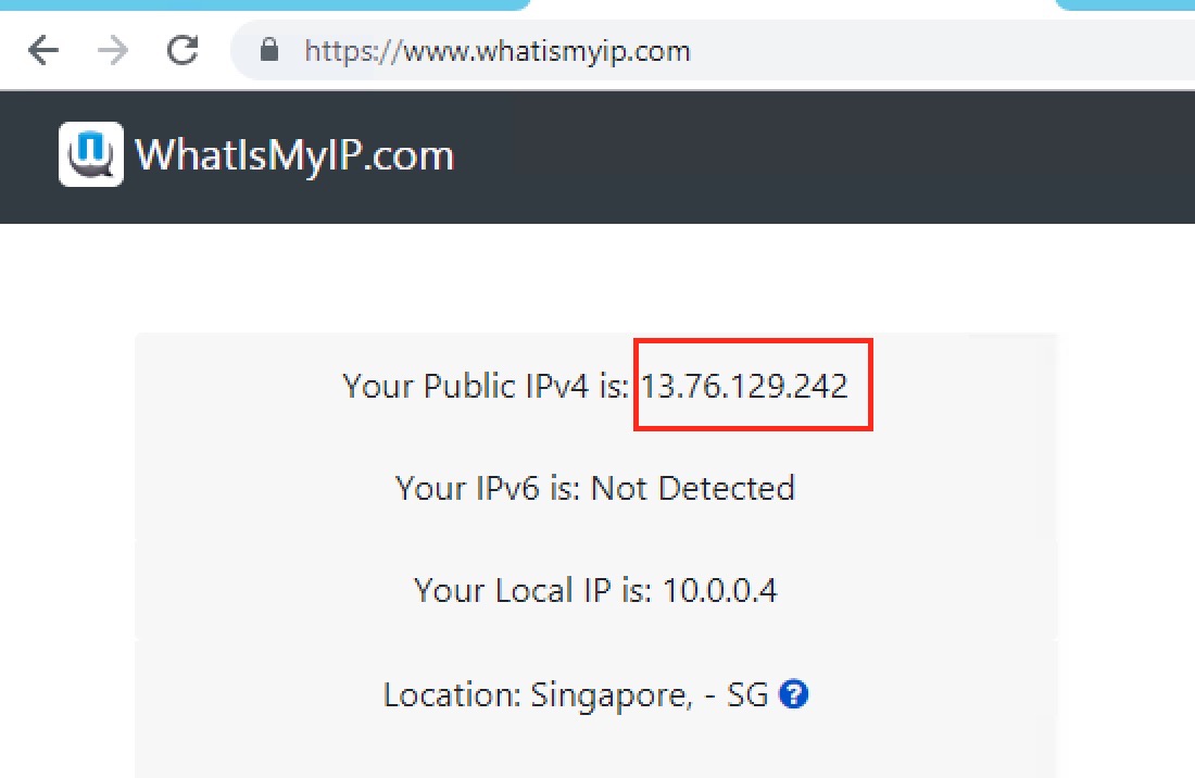1. Bạn có thể xem trực tiếp bên Azure, hoặc truy cập whatismyip.com từ máy ảo để xem ip của máy ảo đó.