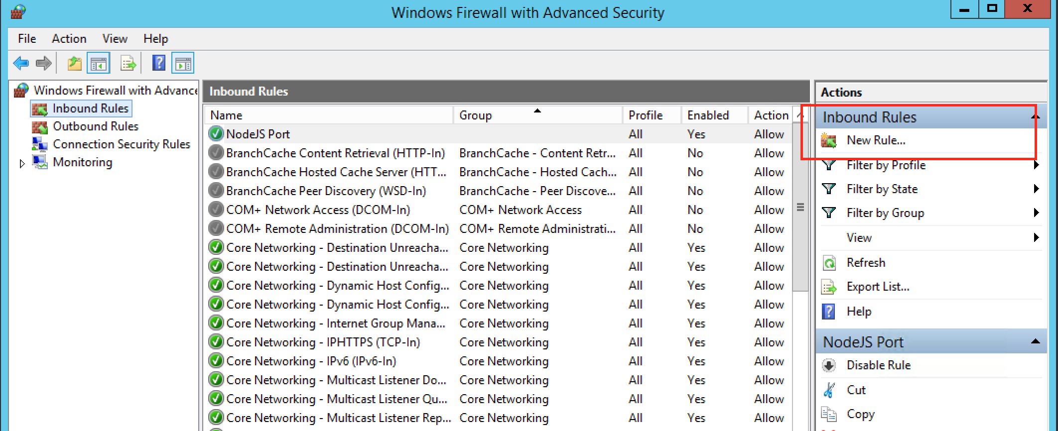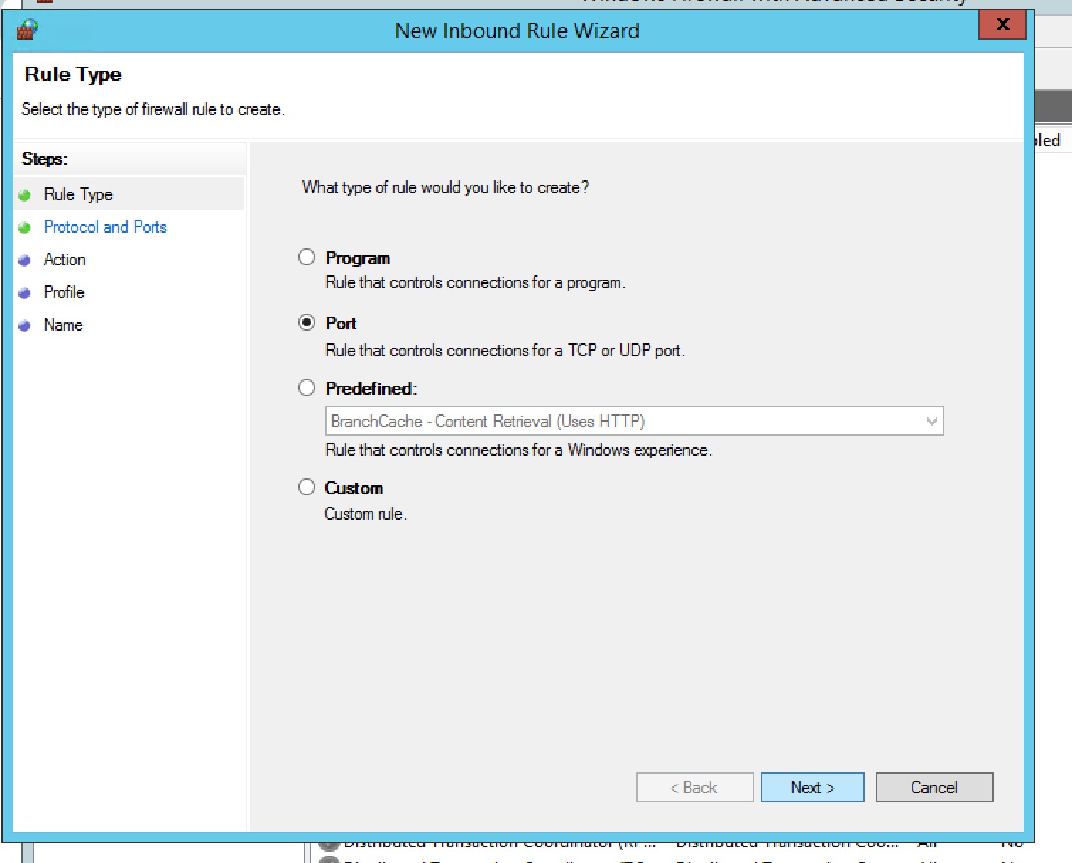 5. Ngoài ra, mặc định Window Fireware cũng sẽ … chặn tất cả các port. Các bạn quay lại máy ảo, vào Start Menu tìm Firewall, sau đó add port 3000 vào nhé.