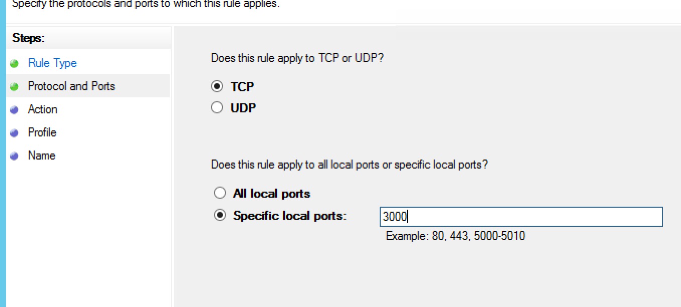 Bạn sẽ thấy ở bài trước, khi tạo VM, ta phải mở port 3389 thì mới có thể RDP vào được. Do vậy, để bà con truy cập được web application ở port 3000, bạn phải cho phép truy cập port 3000.