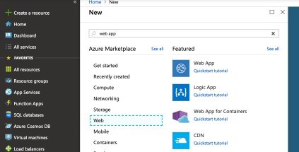 1. Vào Azure Portal. Bấm Create a Resource => Web => Web App
