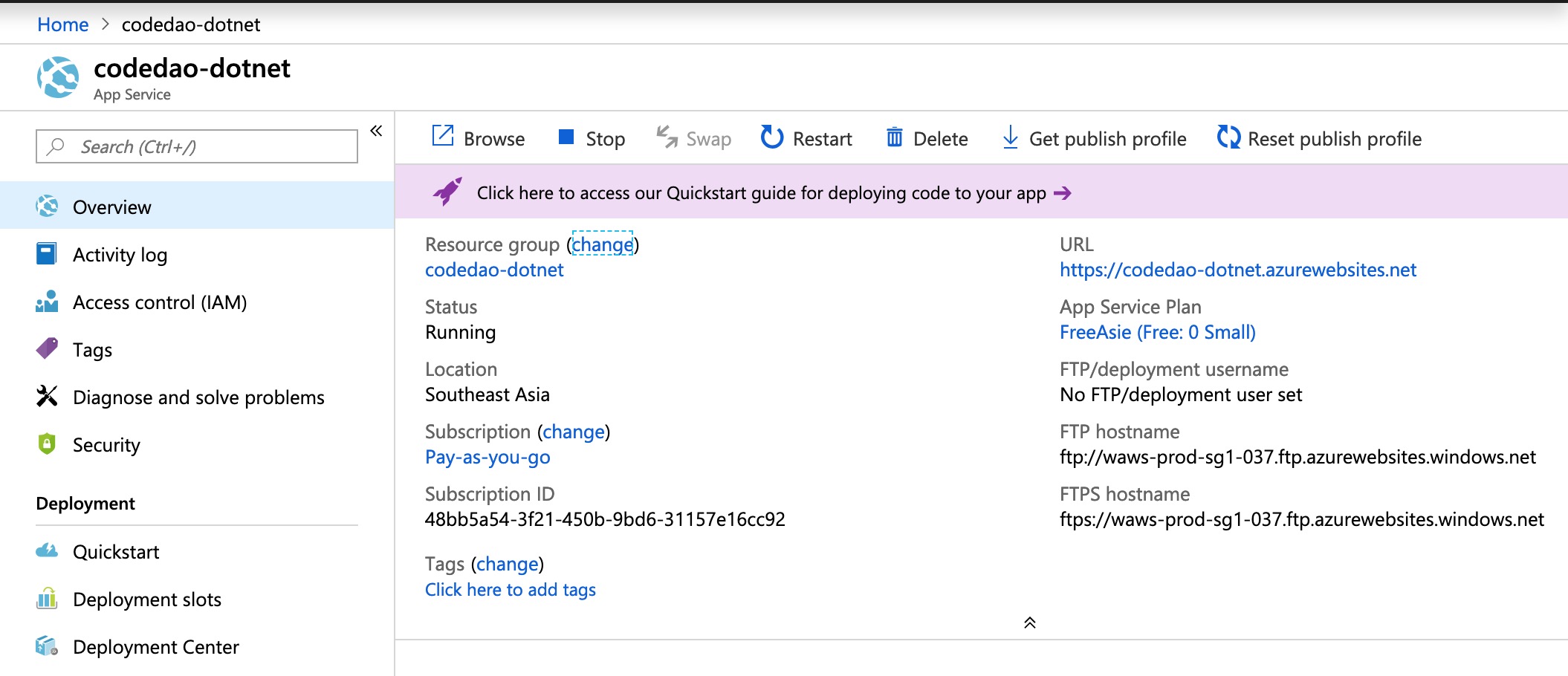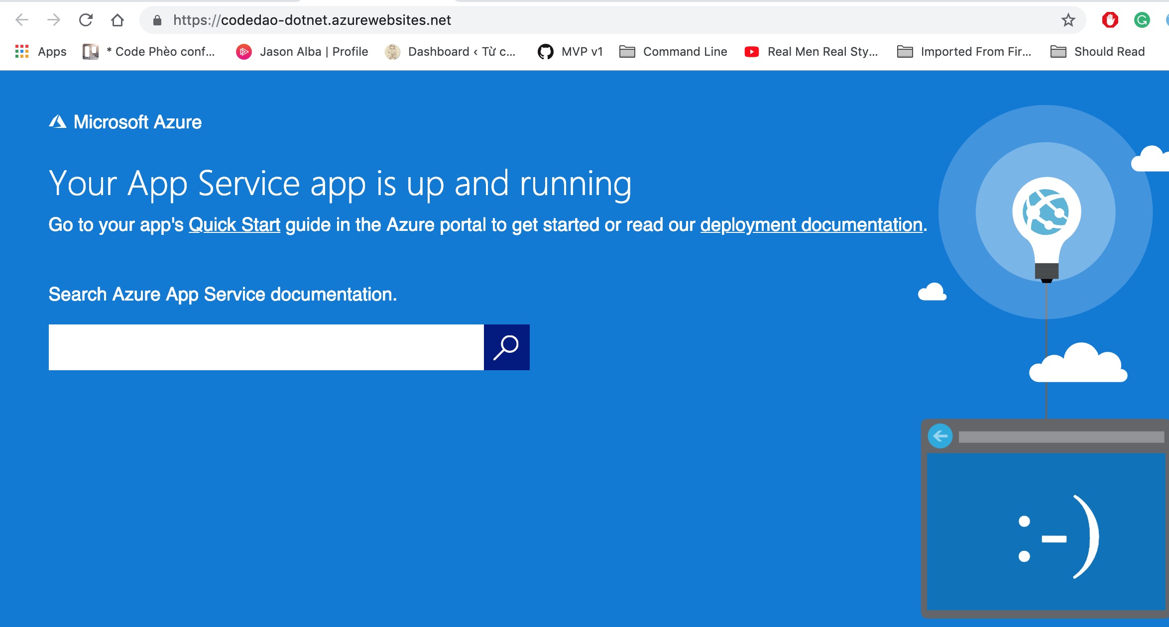 Do vậy, chúng ta sẽ cùng thử deploy bằng cách dùng Azure portal, sau đó mình sẽ chỉ các bạn cách setup dự án kiểu CI, tự deploy mỗi khi bạn commit code nha.