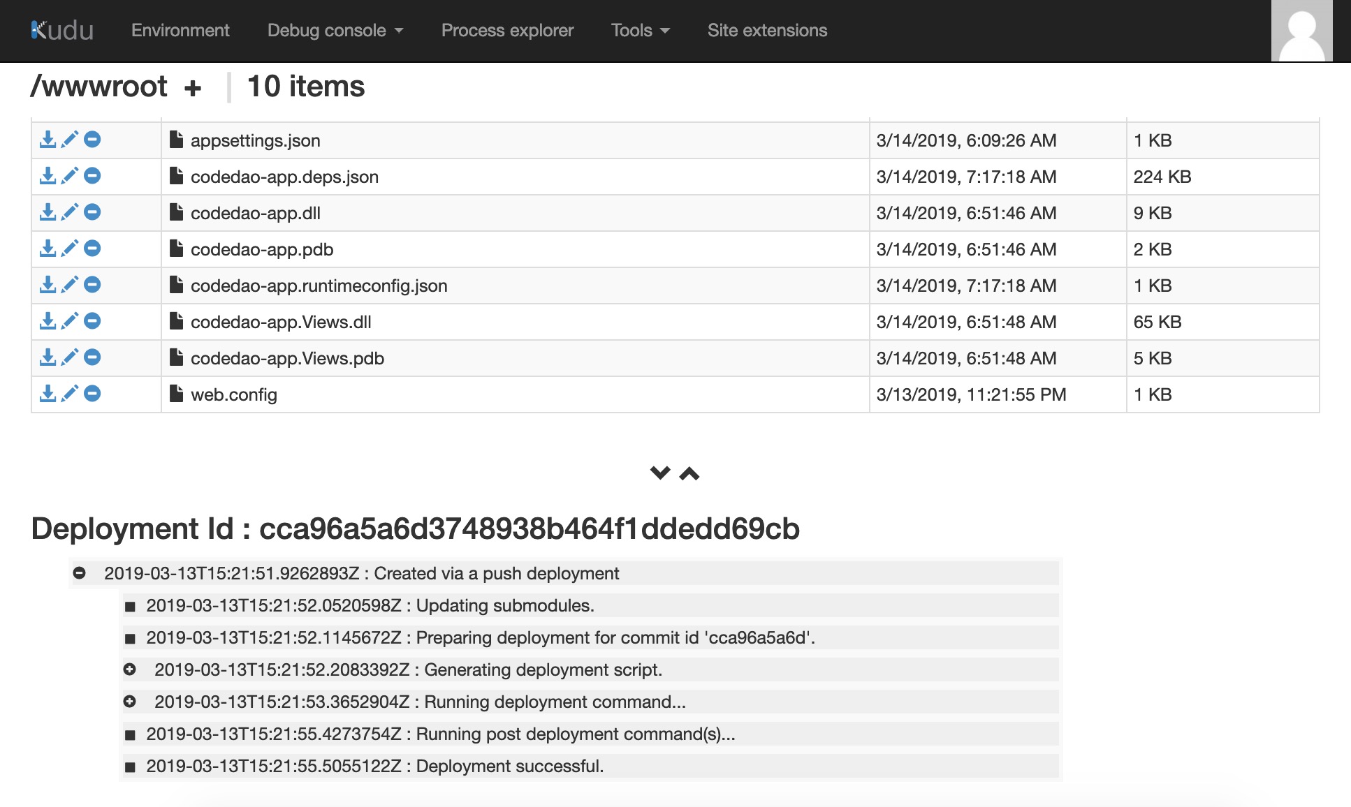 Giả sử web của bạn là codedao-dotnet.azurewebsites.net, bạn hãy truy cập vào codedao-dotnet.scm.azurewebsites.net.