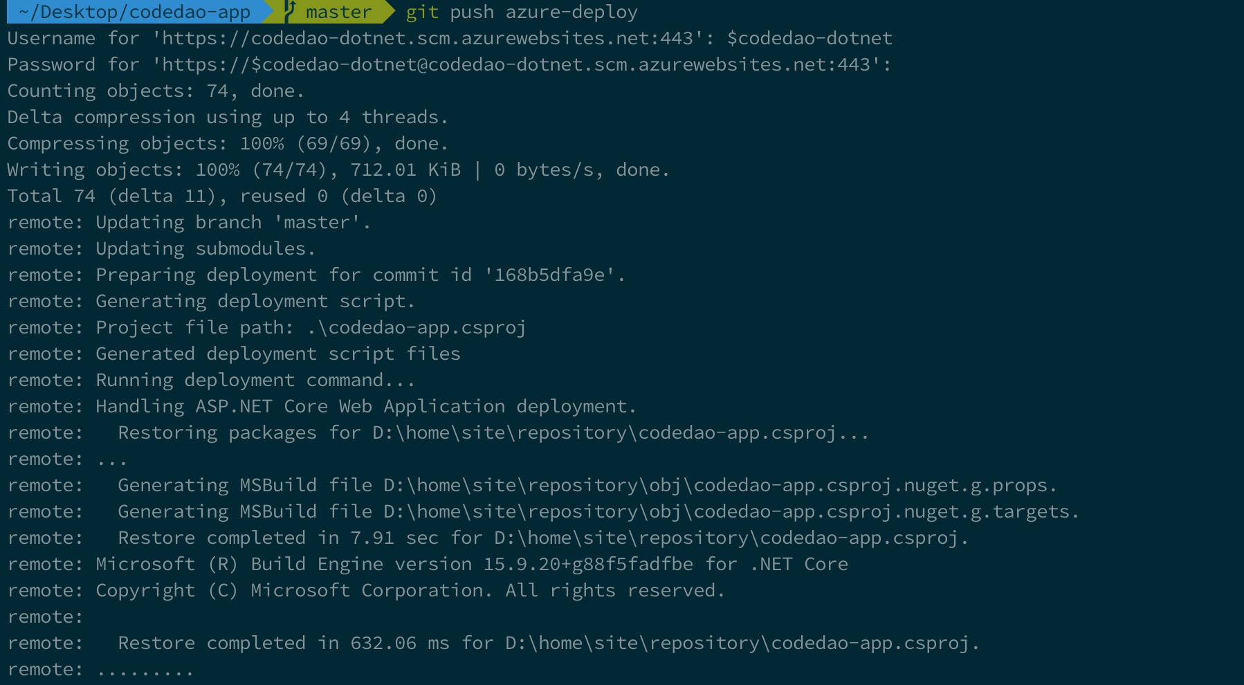 8. Khi bạn sửa code, chỉ cần commit và chạy git push azure-deploy để build và deploy lại lên azure là được. Tiện chưa nào!