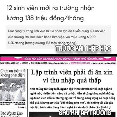 Mấy bài báo hay thổi phồng lên là làm lập trình viên lương “nghìn đô”, lương trăm triệu. Con số này là có thật nhưng không nhiều, đa phần là của các bác senior vài năm kinh nghiệm, hoặc làm các mảng Data/AI/ML có bằng thạc sĩ, hoặc làm việc nước ngoài v…v