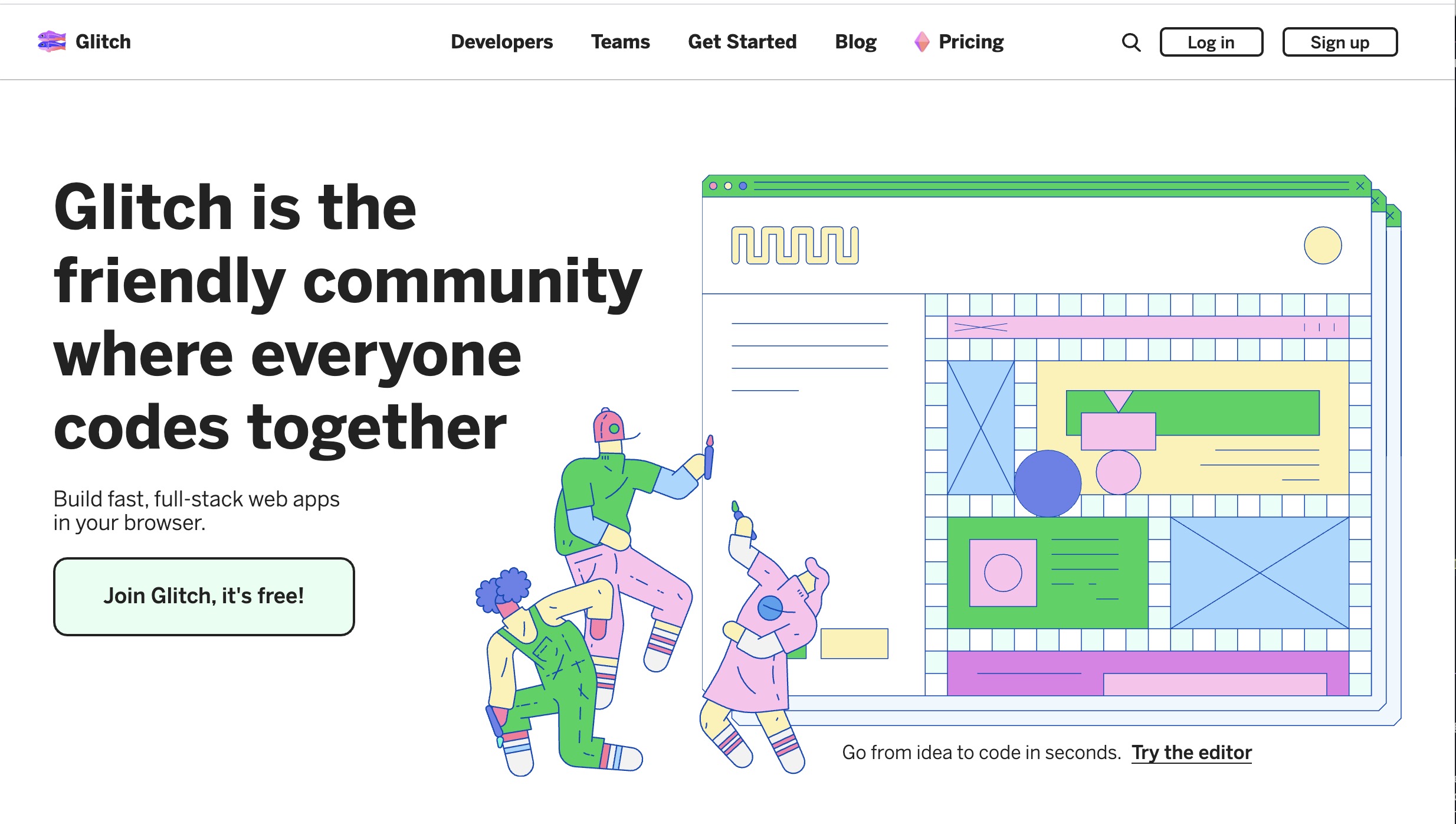 Glitch.com giúp bạn build ngay 1 web bằng cách code từ browser, chả cần cài IDE gì