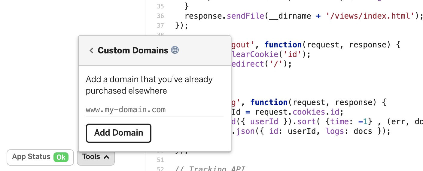 Bạn có thể gắn domain của mình và để app chạy trên Glitch luôn