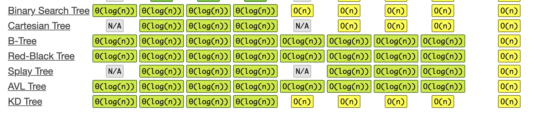 - Binary Search Tree: Biến thể của Binary Tree. Các phần tử trong subtree bên trái phải nhỏ hơn node giữa, bên phải phải lớn hơn node giữa. Mỗi cây con của cây phải là Binary Search Tree