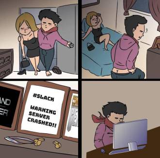 Vào đến nhà nghỉ, Hùng vừa mới tuột quần, chuẩn bị … chạy thẳng vào toilet (chắc do nồi lẩu vừa ăn không sạch lắm). Bỗng dưng, di động reo, anh Sơn team leader trên công ty réo: Hùng ơi, hệ thống sập con bà nó rồi, khách hàng không vào được trang chủ, em lên công ty phụ anh và anh Kha kiểm tra với.
